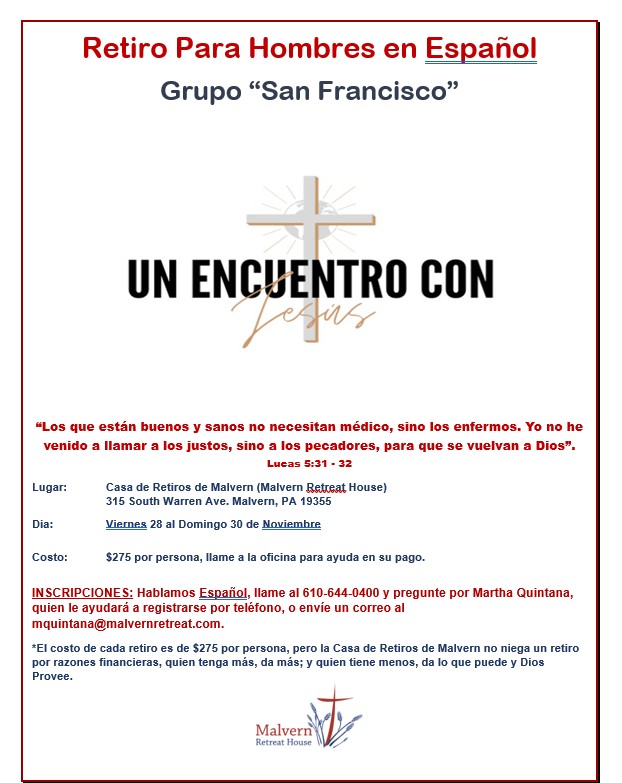 Malvern Retreat House is the oldest and largest Catholic retreat community in the country. Each year, we hold more than 250 retreats, reflections, and special events designed to fulfill the spiritual needs of people seeking to deepen their relationship with Christ. Use our calendar below to browse through our upcoming events and register for a retreat.